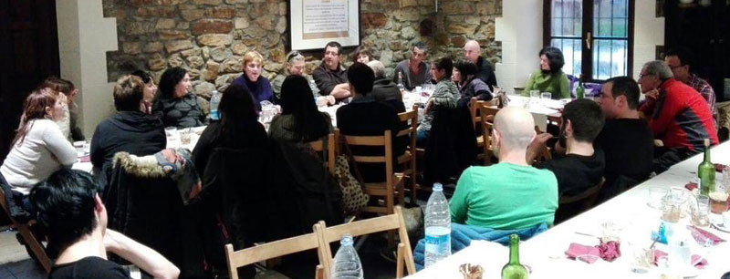 A mediodía, se hizo una comida en Oxangoiti. Y después, una tertulia de sobremesa en torno a múltiples temas, desde las últimas novedades del pueblo, pasando por el internacionalismo, la situación catalana con la participación de Edu Lucas, de Intersindical Catalana-IAC o la interención de Ainhoa Etxaide sobre el futuro del sindicalismo.