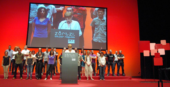 Langileok badakigu borrokak egin gaituela eskubideen jabe eta borroka da eskubideak ziurtatuko dizkigun bide bakarra. LAB borroka egiteko lanabesa izango da. Orain arte bezala. Bide luzea egin dugu 74etik hona. Urrats handiak eman ditugu: Euskal Herria osoan hedatu da. Langileak antolatu ditugu eta tresna baliagarri eta eraginkorra bilakatu gara euskal langile klasearen interesen defentsan. Hemen gauden ordezkariek hartu diegu lekukoa LAB sortu eta honeraino ekarri dutenei.