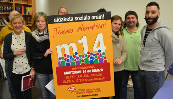 Martxoaren 14an “Aldaketa soziala orain, ¡tenemos alternativas!” lemapean egingo diren manifestazioak 17:00etan hasiko dira, Bilbon, Jesusen Bihotzetik eta 17:30ean Iruñean, Antoniutti Parketik.
