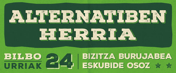 “Alternatiben Herria”, en Bilbo, será nuestra próxima cita. Todas y todos estamos convocadas, personas, grupos, asociaciones, movimientos, sindicatos, grandes o pequeños…. Convocadas a ser protagonistas en ese día con nuestras ideas, aportaciones, enfoques, diferencias, proyectos, acciones… Ahí estaremos con la voluntad de demostrar que en nuestro pueblo hay vida y energía, compromiso y propuestas. Sabemos lo que queremos, y también lo que necesitamos para poder derrotar con una multitud de alternativas al modelo neoliberal imperante. No volveremos a nuestros pueblos y barrios con las manos vacías. No será la última cita. Nos encontraremos en el camino.