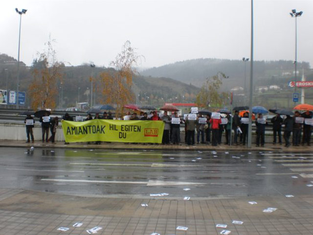 Ehun delegatutik gora hartu dute parte gaur, abenduak 14, LAB sindikatuak amiantoaren gaia eztabaidatzeko Durangon antolaturiko batzarrean. Eztabaidaren ostean FREMAPek herrian duen egoitzaren aurrean elkarretaratzea egin dute.