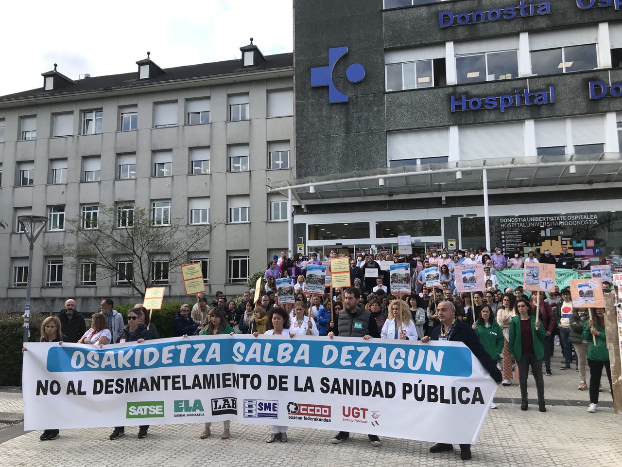 Hartos y hartas, numerosos trabajadores y trabajadoras han salido a la calle en la primera jornada de huelga convocada esta semana en defensa del servicio público y en contra del desmantelamiento que está sufriendo Osakidetza. Por la mañana se han celebrado concentraciones y manifestaciones en Donostia, desde el hospital; en Gasteiz, desde Txagorritxu y en Bilbo, desde Basurto. Al mediodía se han concentrado en varios centros de salud. Mañana viernes, se celebrará la segunda jornada de huelga.