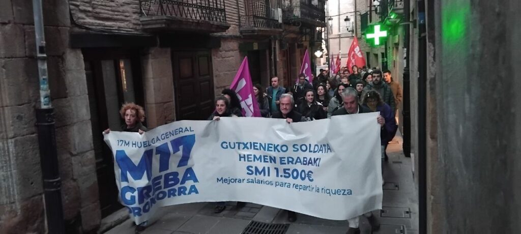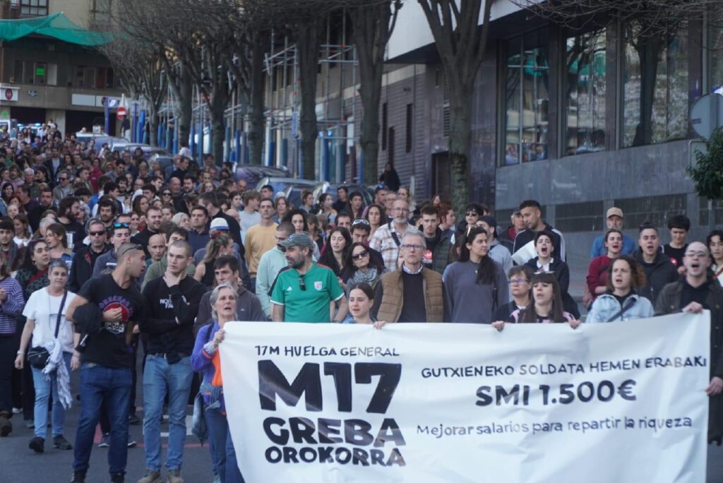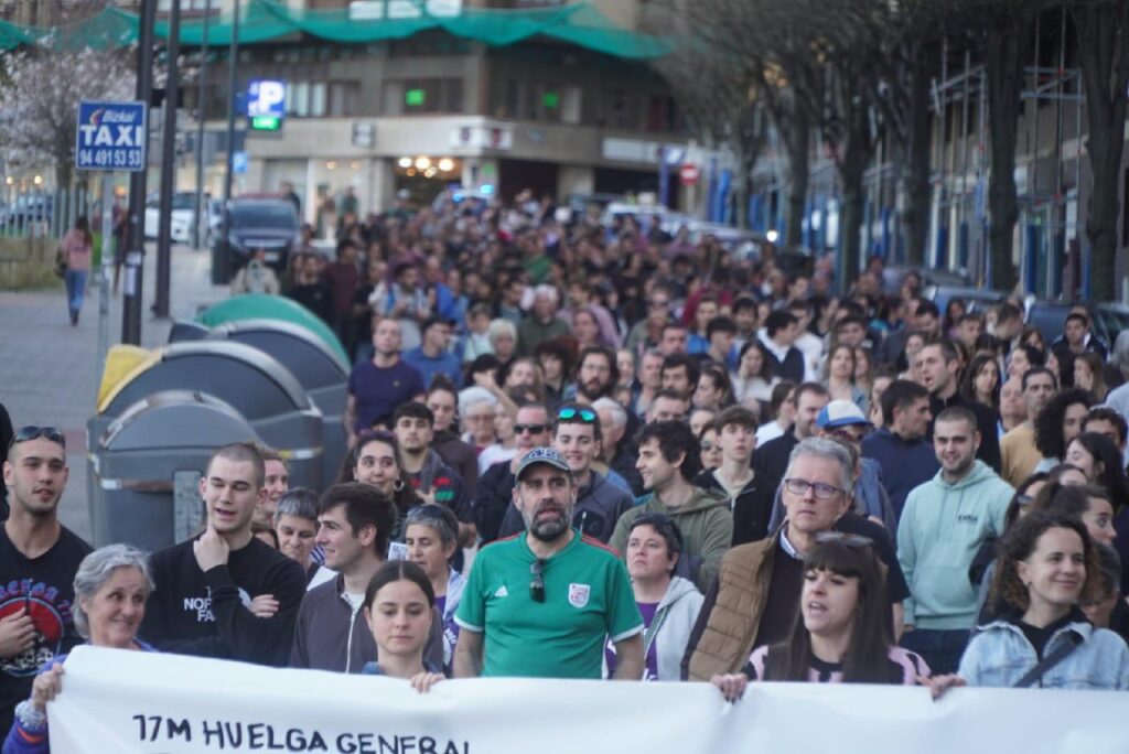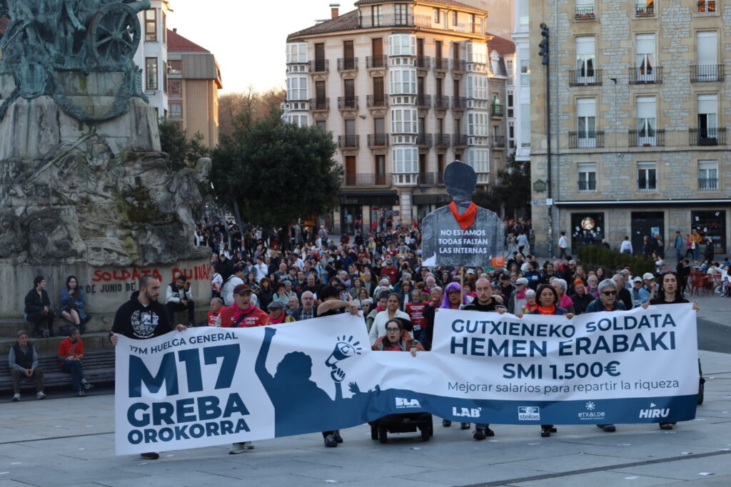 InicioAcción SindicalArgazki galeria: arratsaldeko mobilizazioak Acción SindicalSin categorizar Argazki galeria: arratsaldeko mobilizazioak Cuota WhatsAppFacebookTwitterEmailImpresiónTelegram 2026-03-17 0 Agurain Algorta Algorta Arrasate Arrasate Arrasate Arrasate Arrigorriaga Arrigorriaga Aulesti Azkoitia Bakio Balmaseda Balmaseda Beasain Beasain Beasain Bergara Bergara Bermeo Bermeo Biasteri Biasteri Bilbo Bilbo Bilbo Bilbo Deba Deba Durango Elgoibar Elorrio Erandio Ermua Ermua Etxebarri Galdako Galdakao Galdames Gasteiz Gasteiz Gasteiz Getaria Hernani Hernani Hernani Irun Iruñea Iruñea Iruñea Iruñea Laudio Legazpi Lekeitio Lizarra Markina-Xemein Muskiz Mutriku Oñati Oñati Orereta Orio Otxandio Sestao Sodupe Soraluze Soraluze Tafalla Tolosa Tolosa Txorierri Ugao Ugao Urretxu-Zumarraga Zaldibar Zarautz Zarautz Zestoa Zornotza Zornotza Zumaia Cuota WhatsAppFacebookTwitterEmailImpresiónTelegram Artículo anteriorArgazki galeria: eguerdiko mobilizazioakArtículo siguienteIgor Arroyo: «Con la demostración de fuerza de hoy, hemos conseguido volver a abrir ambas vías» TagsAcción SindicalSMI AZKEN ALBISTEAK | ÚLTIMAS NOTICIAS Cerca de 105.000 personas salen a la calle por un SMI propio para Hego Euskal Herria 2026-03-17 El éxito de la Huelga General del 17 de marzo queda confirmado por las movilizaciones masivas: Bilbo (45.000), Donostia (30.000), Gasteiz (15.000), Iruñea (10.000),... Igor Arroyo: «Con la demostración de fuerza de hoy, hemos conseguido volver a abrir ambas vías» 2026-03-17 El coordinador general de LAB ha destacado que, si bien la patronal y los gobiernos han cerrado las dos vías para lograr un salario... Argazki galeria: eguerdiko mobilizazioak 2026-03-17