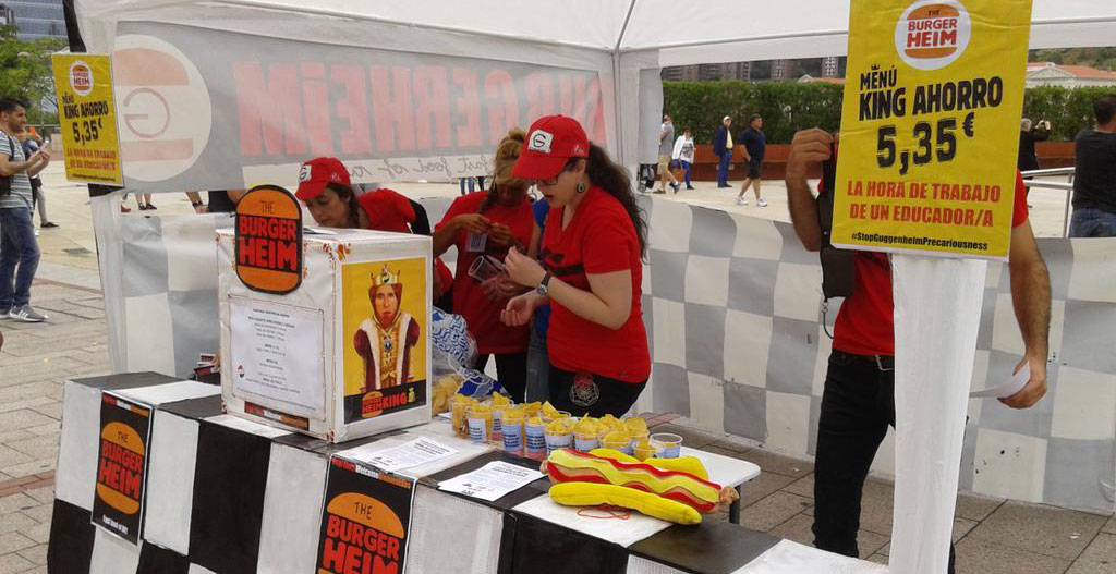 Irailaren 5ean, Bilboko Guggenheim Museoan Manpower Groupek azpikontratatuta dauden Gida eta Hezitzaileek greba mugagabea hasi zuten 18 hezitzaileren kaleratzea salatu eta lan-baldintzak hobetzeko eskatuz. Burutzen ari diren mobilizazioen artean, gaur, irailaren 8an, langileek ekimen ikusgarria egin dute, “Burguerheim” irudikatuko dute, “artearen fast-food”-a.