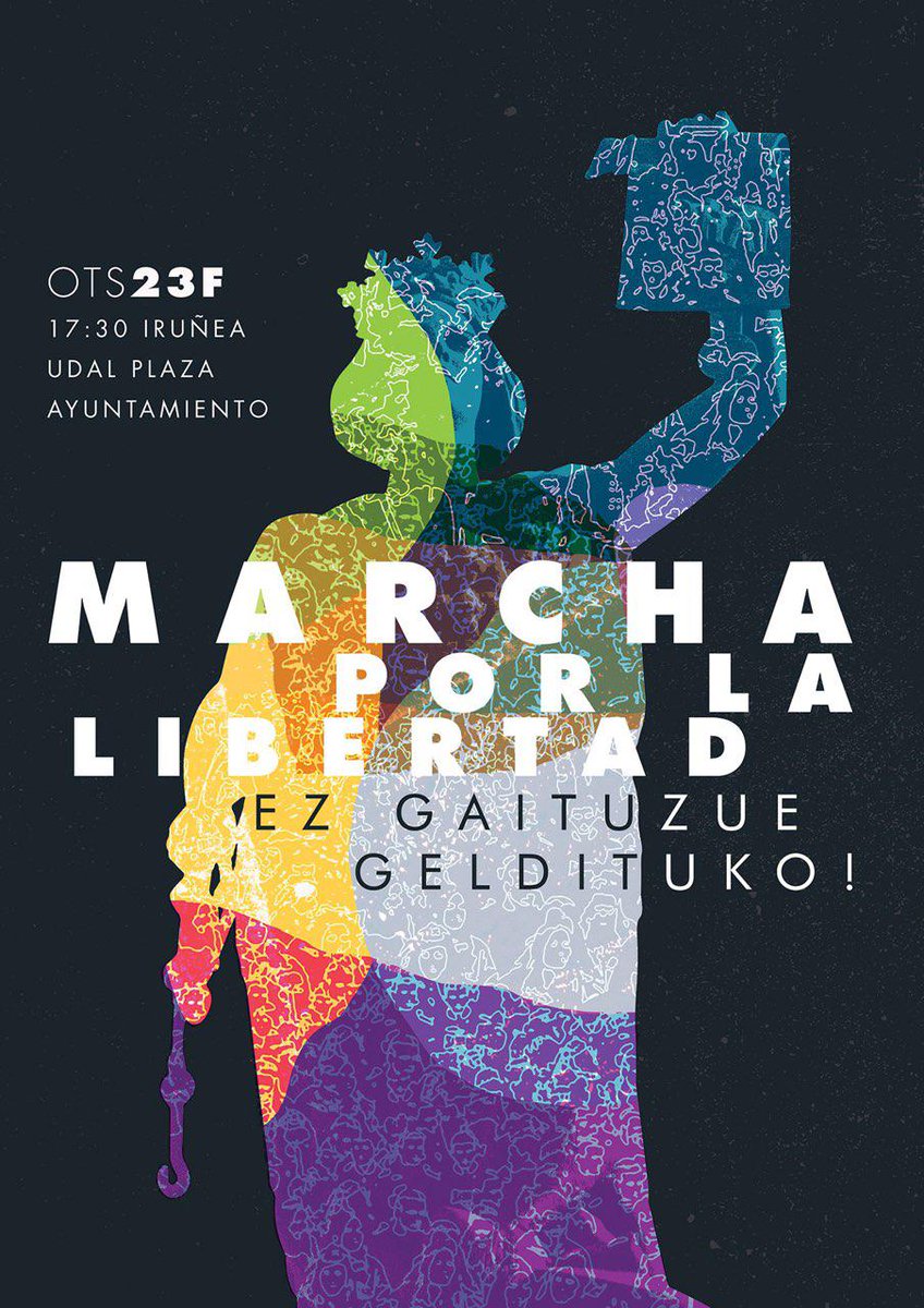 Hainbat eragilek, LABek barne, manifestaziora deitu dugu larunbaterako, otsailak 23, Iruñean, Askatasunaren Aldeko Martxa izenburupean. Udaletxe plazatik abiatuko da mobilizazioa, 17:30ean, eta kolektibo desberdinak bilduko ditu, ultraeskuinaren eta erregimenaren aldekoen mehatxuari aurre egiteko. Hala, langileak, emakumeak, pentsiodunak, migranteak, gazteak… bilduko ditu protestak.
