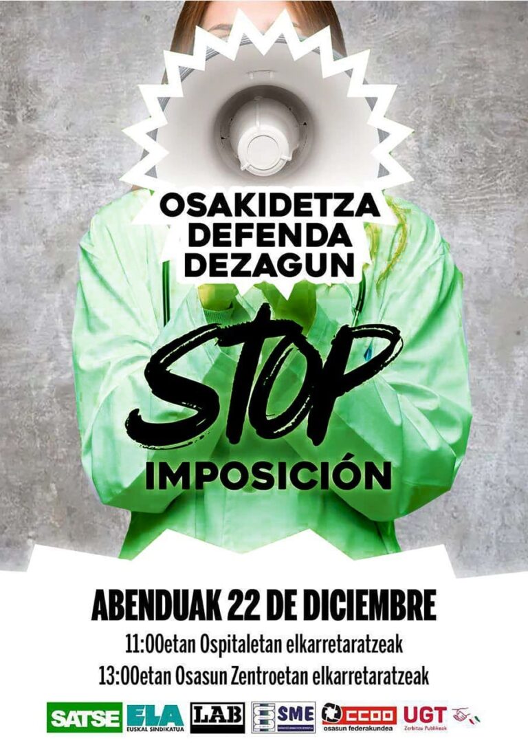 Los sindicatos LAB, SATSE, ELA, SME, CCOO y UGT iniciamos una dinámica de movilizaciones en Osakidetza para exigir negociación y proteger nuestra sanidad pública