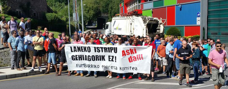 Fumbarriko enpresa komiteak deituta 24 orduko lanuztea burutzen ari da gaur lantegian azken heriotz istripua salatu eta beren lankidea gogoratzeko. Eguerdiko 12:00etan elkarretaratze egin dute "Laneko istripu gehiagorik ez! Aski da!" lemapean, eta bertan enpresari, dagokion erantzukizunez, prebentzio protokolo eta neurriak dagokion garrantziaz aplikatu ditzala eskatu diote eta administrazioari lehenbailehen argitu dezala eta, batez ere, dagozkien prozedura eta neurri guztiak aplika ditzala berriro horrelakorik gerta ez dadin, ez Fumbarrin ezta beste inon ere.