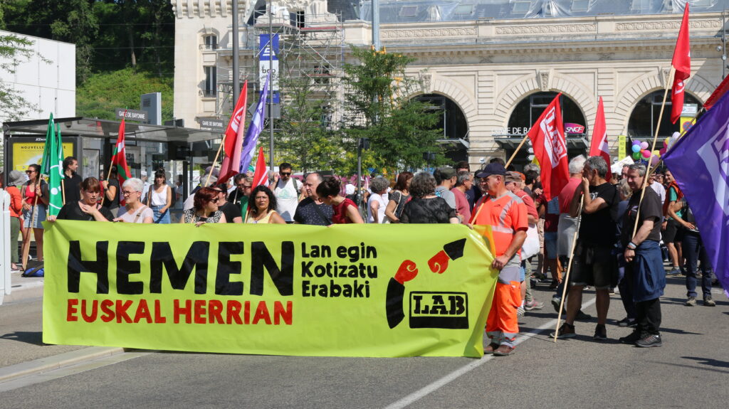 Erretreten erreforma kentzeaz gain, sistema publiko eta duina aldarrikatzen du LAB sindikatuak, Euskal Herrian eta Euskal Herritik eraikiko dena. Bitartean, frantses estatuarekiko konfrontazioaren bidean irmo jarraitzeko asmoa iragarri du Argitxu Dufauk, gaurkoan egin bezala.