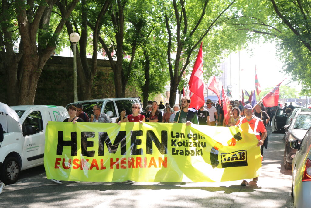 Intersindikalean artean ere onartzen ez gaituzten arren, LABeko ordezkari Argitxu Dufauk bere lekua hartu du pankarta nagusiaren aldamenean.