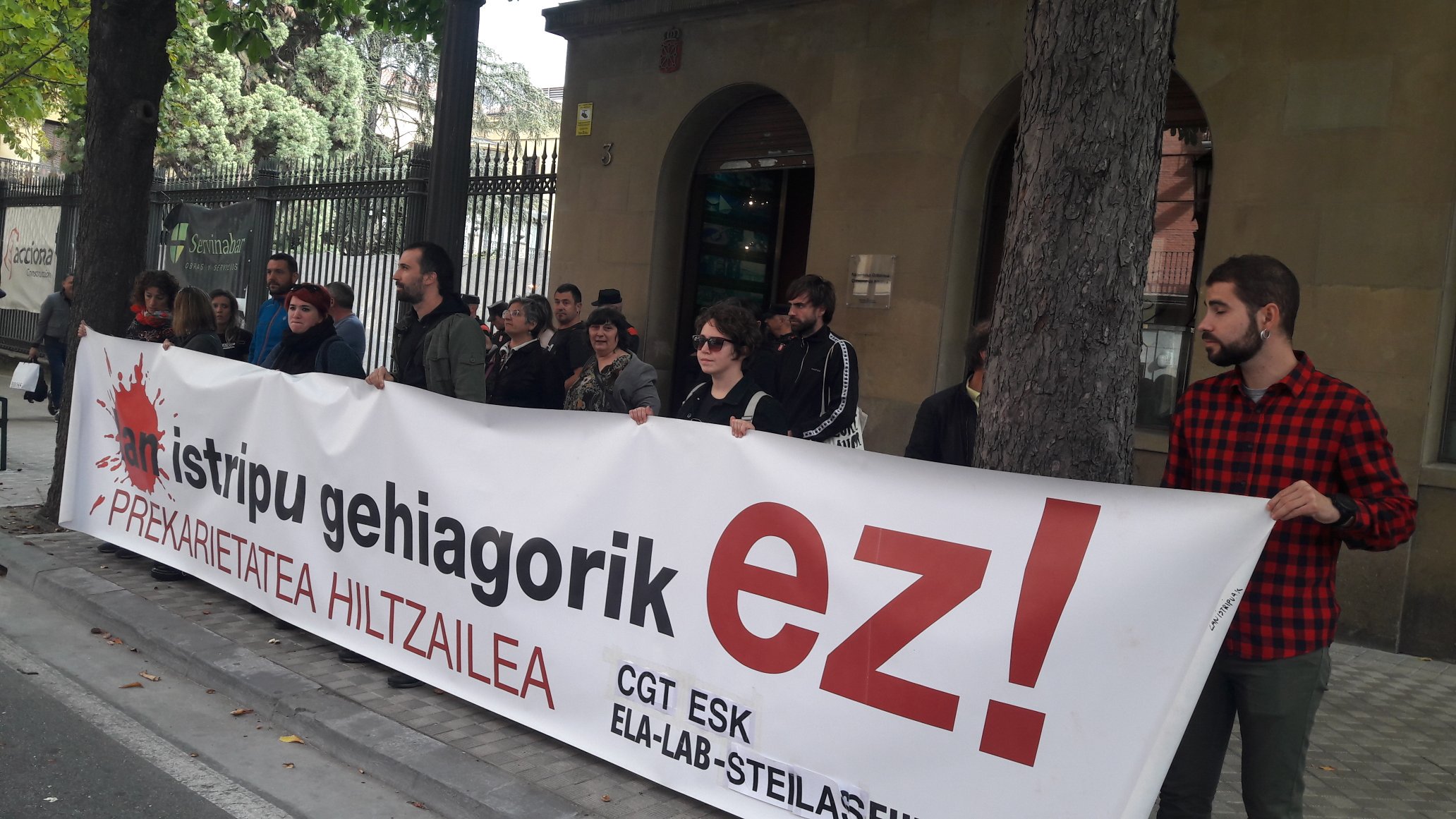Azken lan heriotza salatu dugu Nafarroako Gobernuaren Garraio departamentuaren egoitza aurrean. Aurten, gutxienez, 36 pertsona hil dira lan istripuz Euskal Herrian. Sarraskiarekin bukatu beharra dagoela salatu dugu Iruñean.