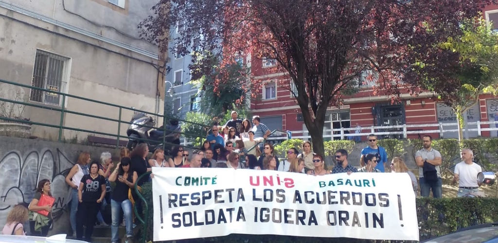 InicioServicios PrivadosLimpiezaBasauriko udal eraikinen garbiketa zerbitzuko langileak kalera irten dira Limpieza Basauriko udal eraikinen garbiketa zerbitzuko langileak kalera irten dira Cuota WhatsAppFacebookTwitterEmailImpresiónTelegram 2018-10-05 0 Basauriko Udaleko eraikinak garbitzen dituzten langileak Uni2 enpresaren aurrean mobilizatu dira, pasa den apirilean Garbiketa Hitzarmena sinatu eta ordutik soldata igoerarik ez zaielako aplikatu. Azaroan ospatuko da epaiketa. Cuota WhatsAppFacebookTwitterEmailImpresiónTelegram Artículo anteriorAmiantoaren biktimen nazioarteko topaketan hartu dugu parte BartzelonanArtículo siguienteDenunciamos firmemente la actitud engañosa del Departamento Educación dirigido por Cristina Uriarte, y exigimos que cumpla de manera inmediata los acuerdos firmados TagsgarbiketaServicios Privados AZKEN ALBISTEAK | ÚLTIMAS NOTICIAS LAB denuncia de forma rotunda que hayan dejado a 111 personas en la calle en el barrio de Martutene de Donostia 2025-12-04 LAB recuerda que toda la ciudadanía tiene derecho a tener una vida que merezca ser vivida, y ha reclamado a las instituciones que lo... Gobierno Vasco: ¡garantiza la financiación necesaria para la universidad pública! Partidos políticos del Parlamento: ¡defended firmemente la EHU! 2025-12-04 El paro y la concentración de hoy son la cuarta de las movilizaciones llevadas a cabo esta semana en los campus de la EHU,... Condiciones de vida y trabajo de la clase trabajadora de Navarra: una de cada dos navarras sigue viviendo en situación de precariedad 2025-12-04 En Navarra el salario medio ha subido en el último año, pero tanto las desigualdades sociales como las situaciones de pobreza están aumentando. Por...