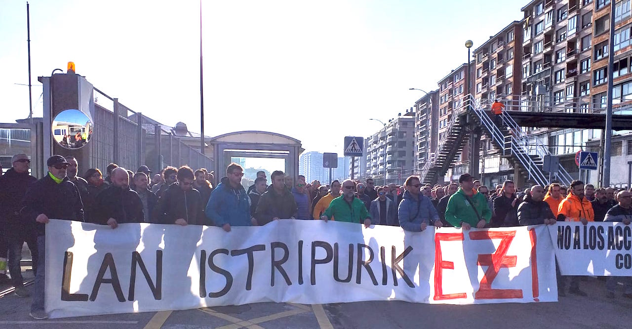 Bilbo Estiba enpresa batzordeak deituta, lanuzteak eta mobilizazioak egin dituzte gaur Bilboko Portuan, atzo hildako langilearen lan heriotza salatzeko. Bilboko Portuaren instalazioetan, Santurtzin, 2015. urteaz geroztik 5 langile hil direla gaitzetsi dute.