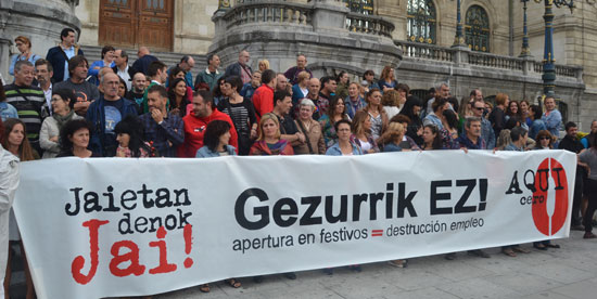 InicioServicios PrivadosComercioBilboko Udalak ordutegiak liberalizatzeko hartutako erabakiaren aurka atera dira sindikatu, eragile, elkarte...