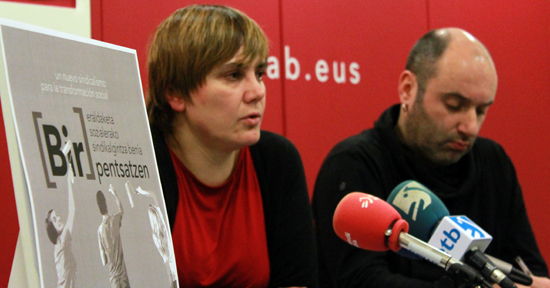 LAB sindikatuak eta Ipar Hegoa Fundazioak datorren martxoaren 5 eta 6an eta apirilaren 25ean burutuko diren "[Bir]pentsatzen: eraldaketa sozialerako sindikalgintza berria" jardunaldien berri eman dute gaur Donostian. Ainhoa Etxaide, LABeko idazkari nagusiak eta Jagoba Zulueta, LABeko Formakuntzako idazkaria eta Ipar Hegoa Fundazioko arduradunak, sindikalgintzak egungo errealitate politiko, ekonomiko eta sozialean eragiteko eredu aldaketa baten beharra duela adierazi dute, eta jardunaldi hauek LABek, hemendik eta 2017ko kongresura arte, martxan jarriko duen sindikalgintza ereduaren gaineko barne eztabaidaren baitan kokatzen dela azaldu dute.