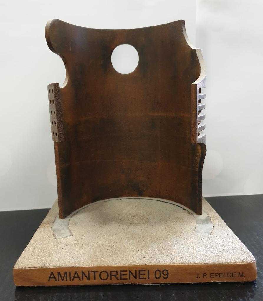 Amiantoaren eraginez hildako langileen omenezko eskultura sortu zuen Patxi Epeldek. Hala, enpresa batzordeak doluminak luzatu dizkie haren senideei.