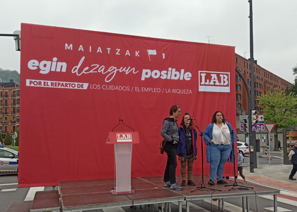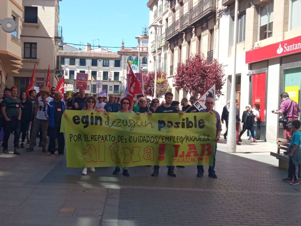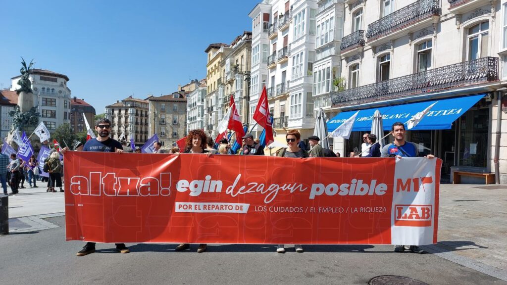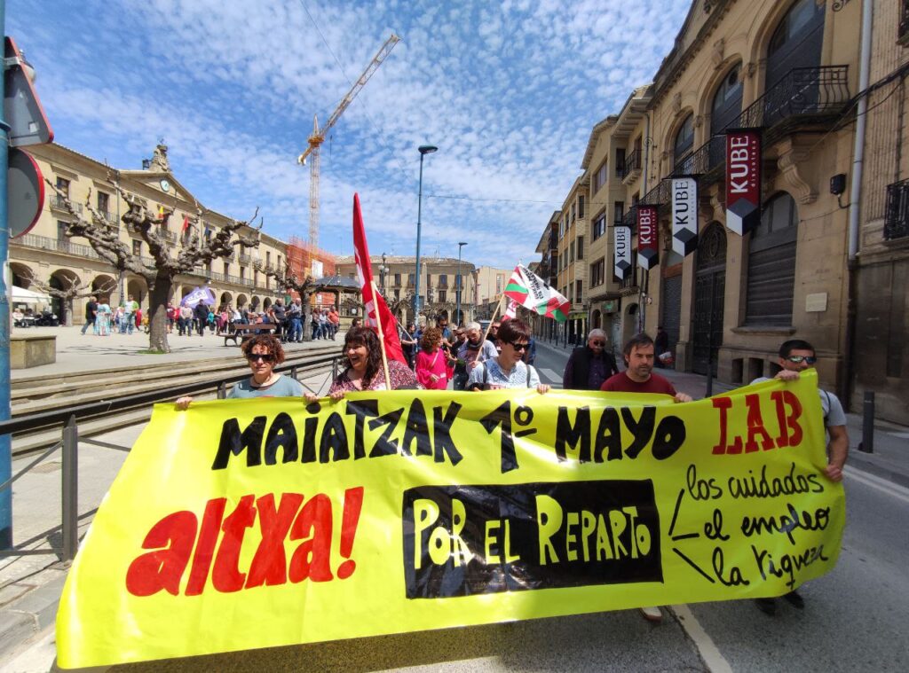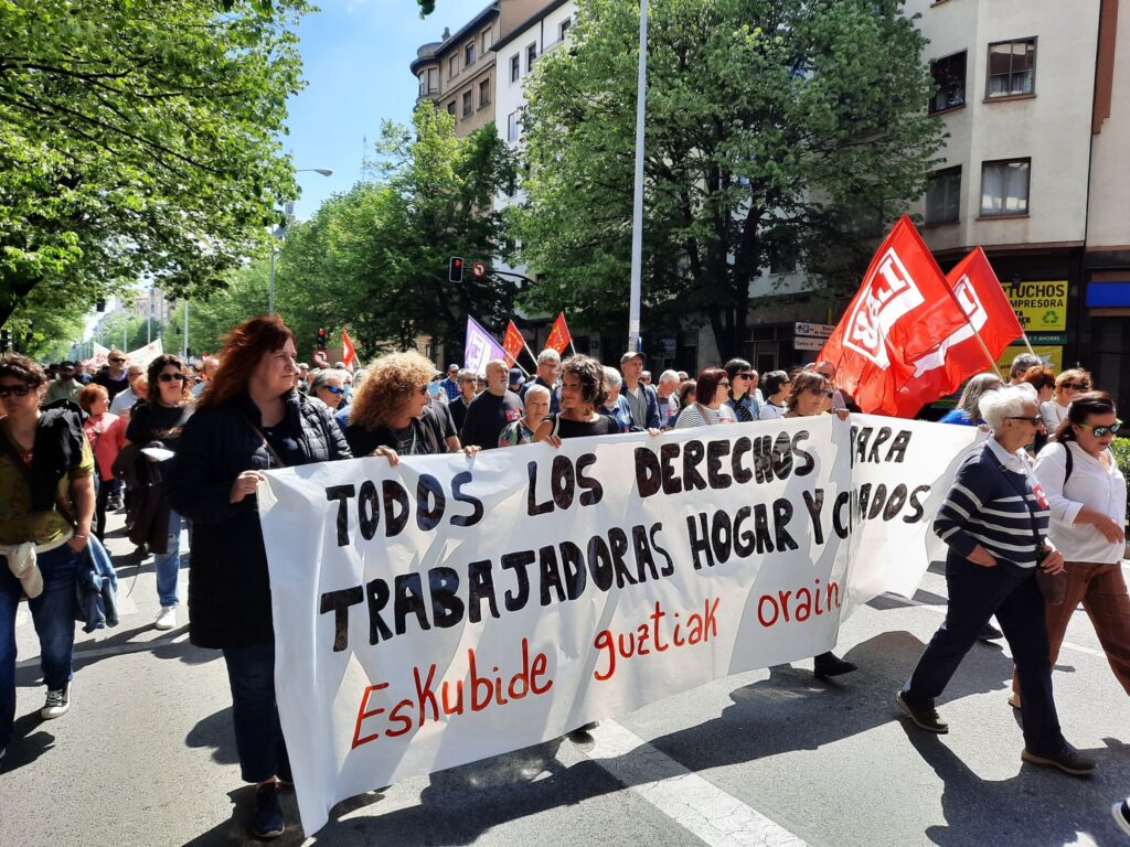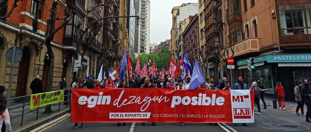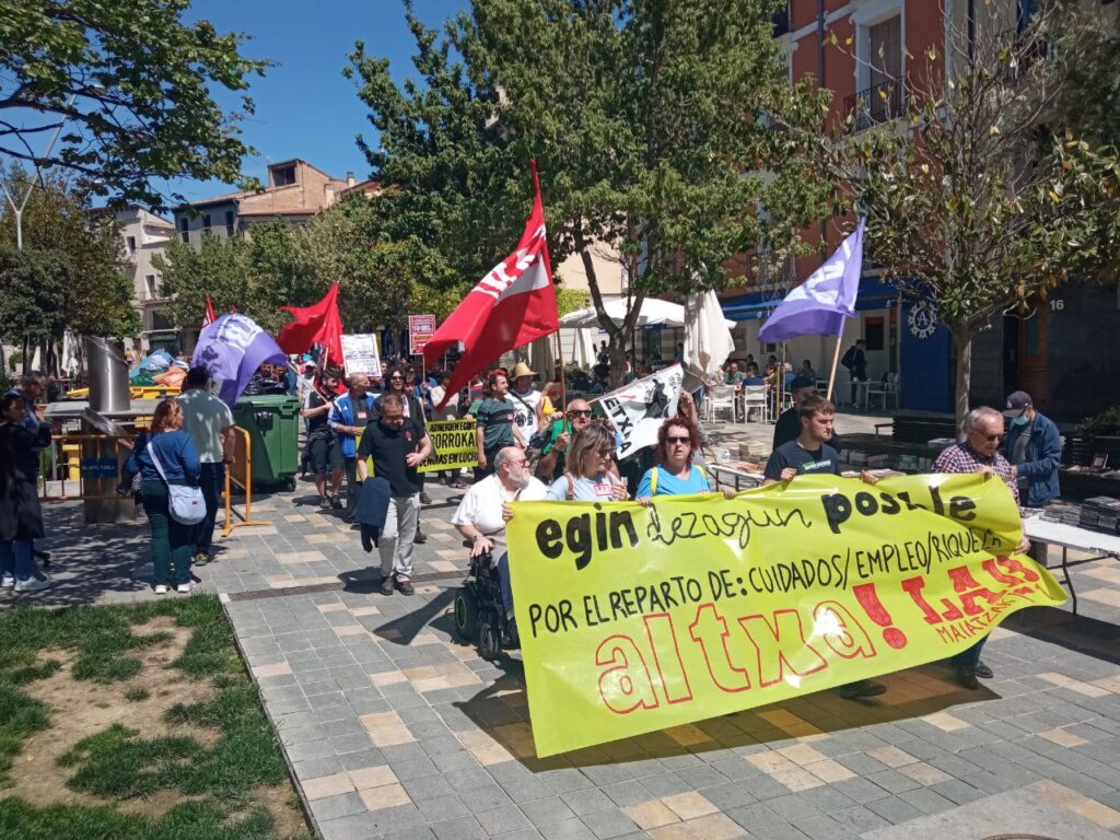 Con la llegada del Primero de Mayo hemos reclamado en la calle el reparto de los cuidados, el empleo y la riqueza bajo el lema «Altxa! Egin dezagun posible. Por el reparto de los cuidados, el empleo y la riqueza».