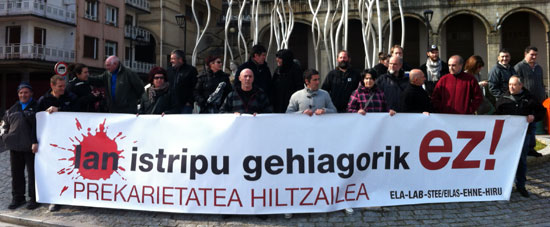 InicioSecretaría de Salud LaboralLa precariedad mataConcentraciones en los puertos de Santurtzi y Ondarroa en denuncia de los... La precariedad mata Concentraciones en los puertos de Santurtzi y Ondarroa en denuncia de los dos nuevos accidentes laborales mortales Cuota WhatsAppFacebookTwitterEmailImpresiónTelegram 2013-02-28 0 Mueren dos marineros en accidente laboral: ya son 13 los fallecidos en accidente laboral en lo que llevamos de 2013 LAB SAREAN {module[111]} Cuota WhatsAppFacebookTwitterEmailImpresiónTelegram Artículo anteriorOTSAILAK 28, GREBA OROKORRA SAKANANArtículo siguienteGipuzkoako 3. adineko egoitza eta eguneko zentroko langileen erantzuna masiboa izan da bigarren greba egunean ere AZKEN ALBISTEAK | ÚLTIMAS NOTICIAS LAB ha participado en el congreso de la central sindical chipriota PEO 2025-12-05 El coordinador general de LAB, Igor Arroyo, se ha sumado a la reivindicación de unidad y autodeterminación de Chipre en en el congreso de... La pretensión de llevar la Ley de Empleo Público al Tribunal Constitucional español supone un agravamiento de la ofensiva judicial contra el euskera 2025-12-05 En contra de la opinión de la sociedad vasca y de la mayoría de los empleados públicos, la resolución podría prohibir situar el euskera... LAB denuncia de forma rotunda que hayan dejado a 111 personas en la calle en el barrio de Martutene de Donostia 2025-12-04 LAB recuerda que toda la ciudadanía tiene derecho a tener una vida que merezca ser vivida, y ha reclamado a las instituciones que lo...