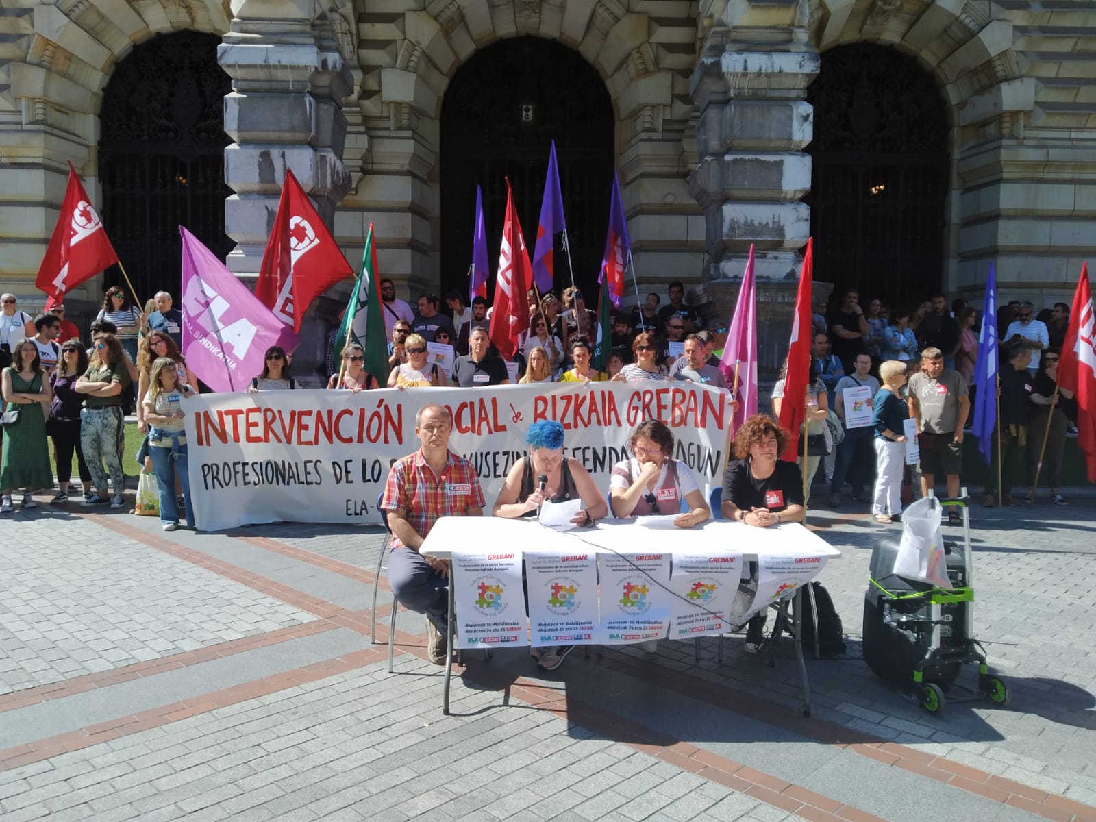 Hoy, 4 de mayo, las trabajadoras del sector de Intervención Social de Bizkaia (LAB, ELA, CCOO y ESK) han anunciado en una concentración frente a la Diputación Foral de Bizkaia la convocatoria de 2 días de huelga los próximos días 24 y 25 de mayo. Asi mismo, el día 16 de mayo volverán a movilizarse previo a la realización de dichas jornadas de huelga. Tras más de año y medio sin renovar el convenio y la friolera de 19 mesas de negociación, las trabajadoras han decidido dar un paso adelante para luchar contra medidas que ponen en riesgo su salud y emprobrecen sus condiciones de trabajo.