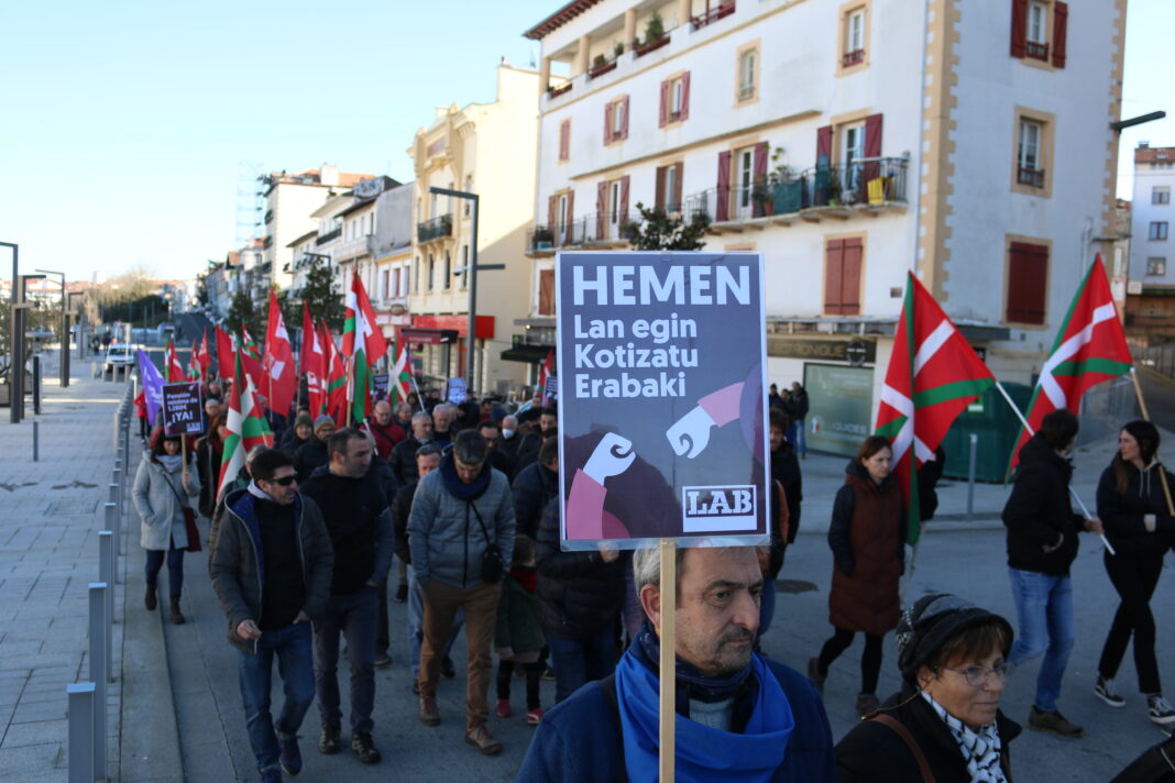 Así las cosas, LAB reivindica que en Euskal Herria se haga posible aquello que no se puede hacer en Madrid y París: una pensión digna para todos y todas las ciudadanas vascas, tanto para quienes han tenido empleo como para las mujeres que se han dedicado a labores de cuidado sin reconocimiento, acabando con toda brecha.