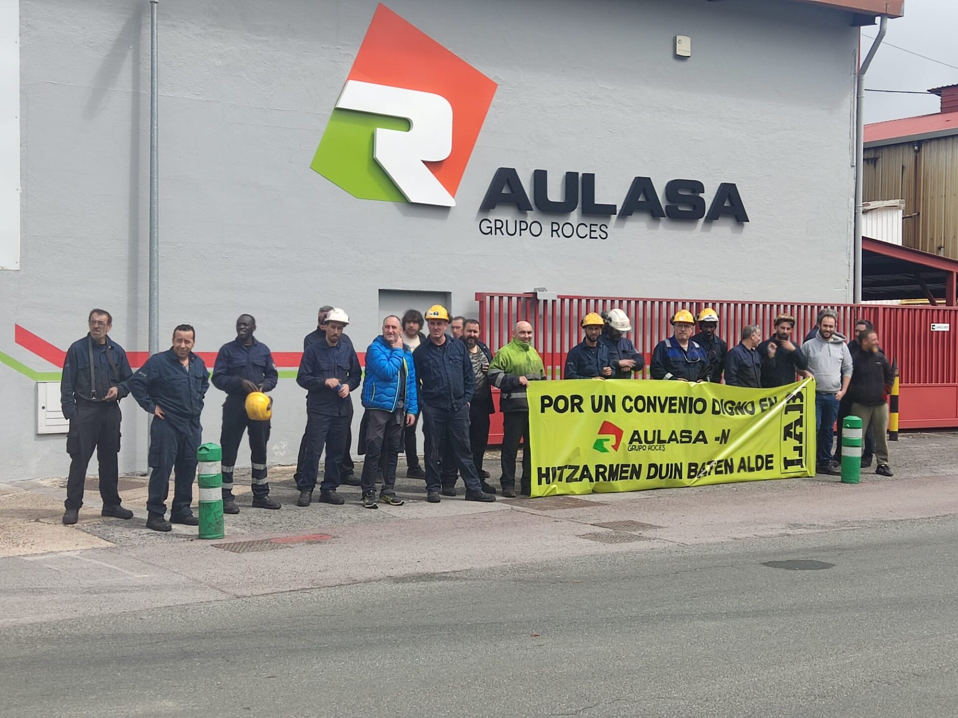 La empresa Auxiliar Laminadora Alavesa SA (AULASA) es una pequeña empresa del sector del metal que se situa en la provincia de Araba, limítrofe con el municipio de Otxandio, en el concejo de Oleta. Han transcurrido más de cinco meses desde el inicio de las negociaciones en el centro de trabajo y la empresa no ofrece más que condiciones aún peores que las establecidas en el convenio provincial. En este punto de bloqueo, la asamblea de trabajadoras y trabajadores, por unanimidad, ha aceptado llevar a cabo concentraciones en los cambios de turno. Hoy, lunes, día 15, han comenzado a movilizarse.