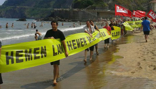 Debaldeako metalgintzako LABeko delegatuak Debako Hondartzan kontzentratu ziren atzo herrialdeko hitzarmen alde eta lan erreformaren aurka.Uztailaren 7a igaro da baina borrokak aurrera dirau, "Hemen lan, hemen bizi eta hemen erabaki!".