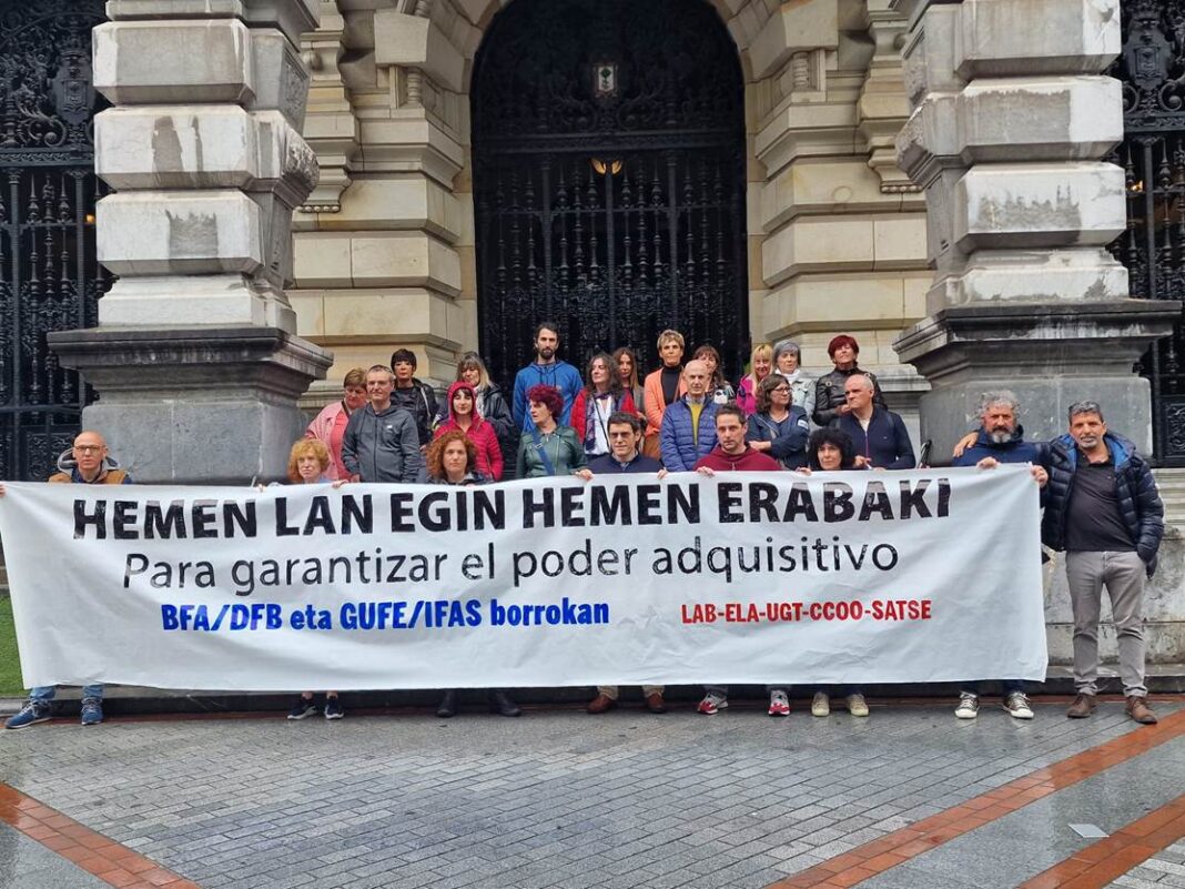 Tras la movilización del personal público de Diputación Foral de Bizkaia e IFAS (Instituto Foral de Asistencia Social) del 25 de abril en la que cientos de personas trabajadoras pidieron el fin del bloqueo de las negociaciones del acuerdo/convenio, hoy 9 de mayo delegados y delegadas sindicales de la Junta de Personal y Comité de Empresa hemos vuelto a denunciar el bloqueo que los y las responsables políticos de la Diputación están imponiendo.