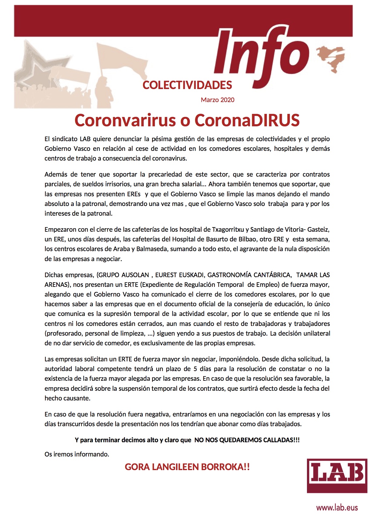 Además de tener que soportar la precariedad de este sector, que se caracteriza por contratos parciales, de sueldos irrisorios, una gran brecha salarial… Ahora también tenemos que soportar, que las empresas nos presenten EREs y que el Gobierno Vasco se limpie las manos dejando el mando absoluto a la patronal.