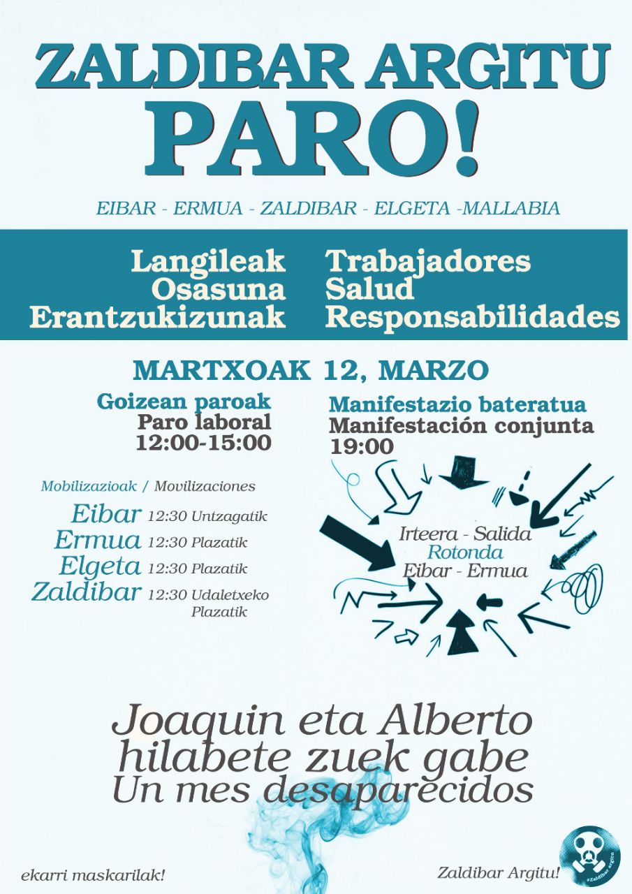 LAB, ELA, ESK, STEILAS, HIRU y Etxalde, sindicatos que conformamos la mayoría sindical vasca, apoyamos las movilizaciones y el llamamiento al paro de la plataforma ciudadana, y llamamos a los trabajadores y trabajadoras a sumarse a las movilizaciones del 12 de marzo.