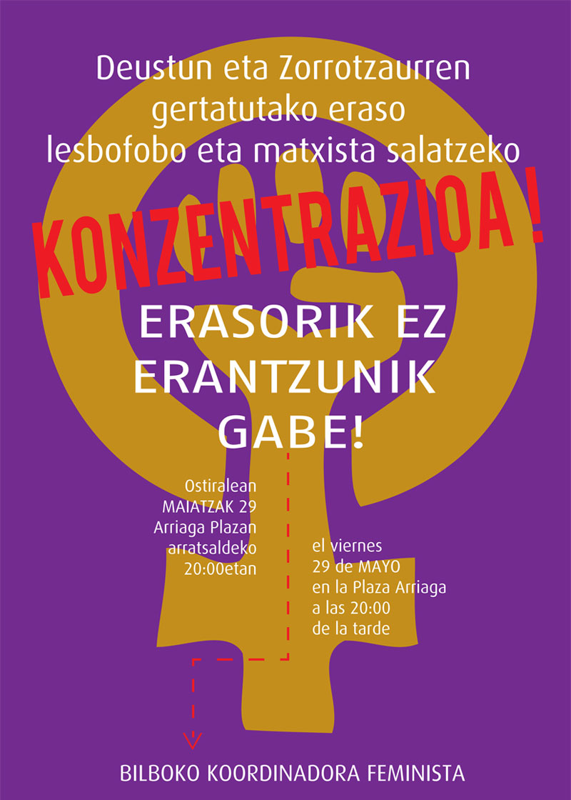 InicioSecretaríasSecretaría FeministaDeustu eta Zorrotzaurreko eraso lebofobo eta matxista salatzeko konzentrazioa bihar Bilbon