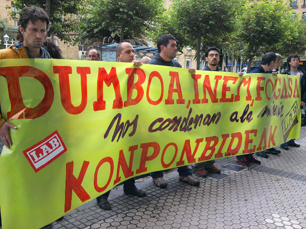 Dumboa eraikuntza enpresako langile ohiek elkarretaratzea egin zuten ostiralean Donostian esku artean duten arazoa salatzeko. Enpresak bere momentuan, azpikontratazioaren aldeko apustua egin eta bere langile ia guztiak kaleratu zituen, kalteordaina eta lan egindako azken bi hilabeteak ordaindu gabe. Langabezia saria jasotzen hasi ziren orduan, eta era berean, epaitegietako bideari ekin zioten, kaleratzeen aurka.
