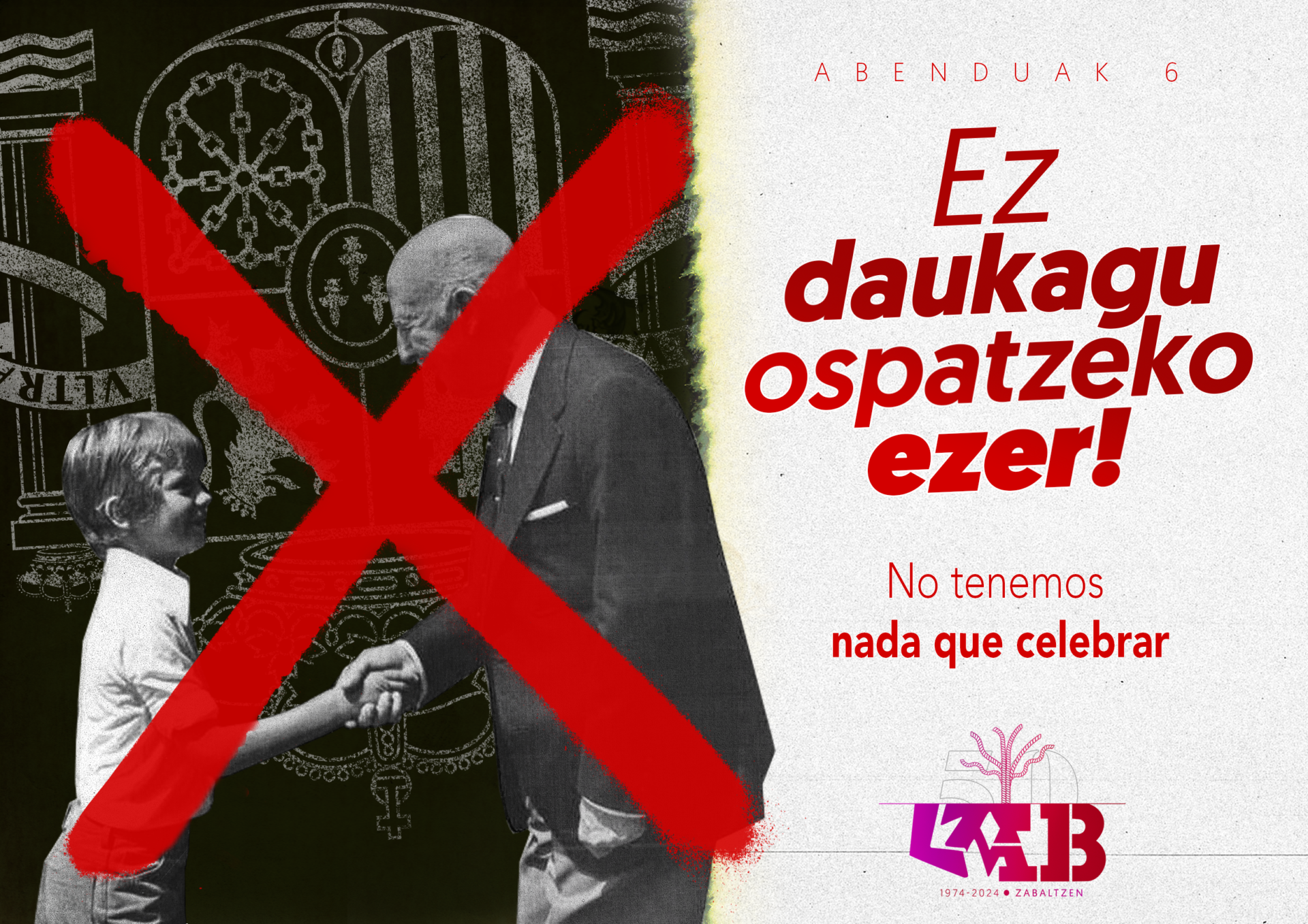 La de mañana es otra de las festividades impuestas en Hego Euskal Herria; en este caso, con motivo del aniversario de la Constitución española. No tenemos nada que celebrar y para LAB, es una jornada para reafirmarnos en nuestro compromiso por una República Vasca. Así, nuestras sedes de Araba, Bizkaia, Gipuzkoa y Nafarroa permanecerán abiertas en el horario habitual de los viernes, de 9:00 a 14:00.