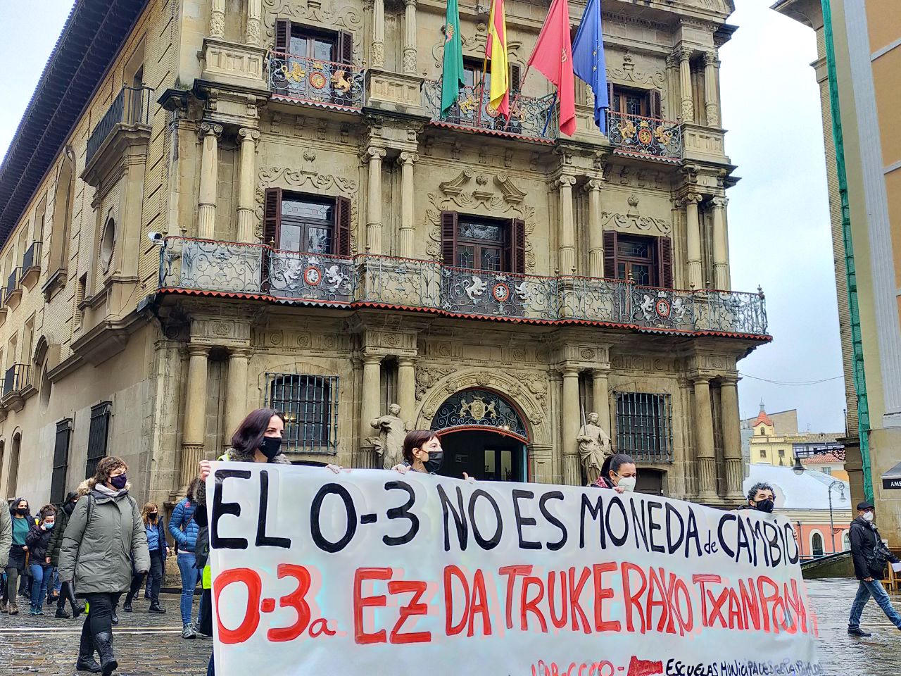 Por eso pedimos tanto al Ayuntamiento de Pamplona como al Gobierno de Navarra que respeten al ciclo; que respeten a las familias, al personal educador y a las niñas y niños. Basta ya de tomaduras de pelo y de tiempos muertos. Exigimos compromisos firmes, no palabras huecas que no dicen nada.