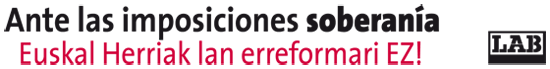 Asimismo, la próxima semana LAB realizará asambleas de delegados y delegadas y movilizaciones bajo el lema Inposaketen aurrean, burujabetza. Euskal Herriak lan erreformari ez”.