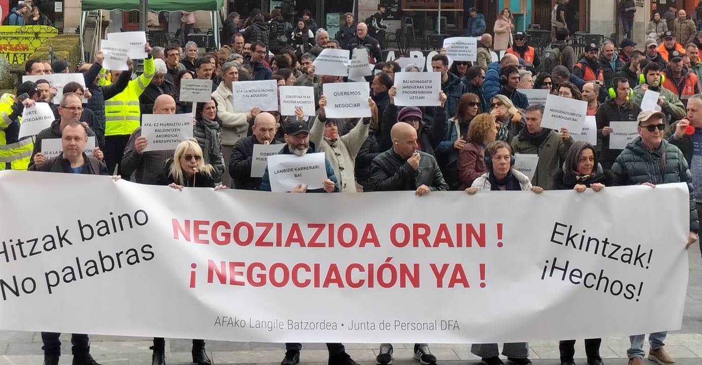 Tras las últimas movilizaciones, están haciendo paros parciales los días 15 y 22 de abril y 6 de mayo en la Diputación Foral de Araba convocados por la mayoría sindical (ELA, LAB, UGT).