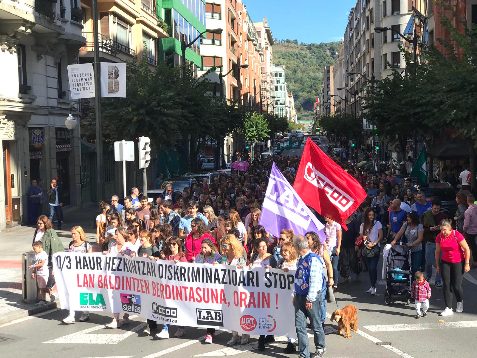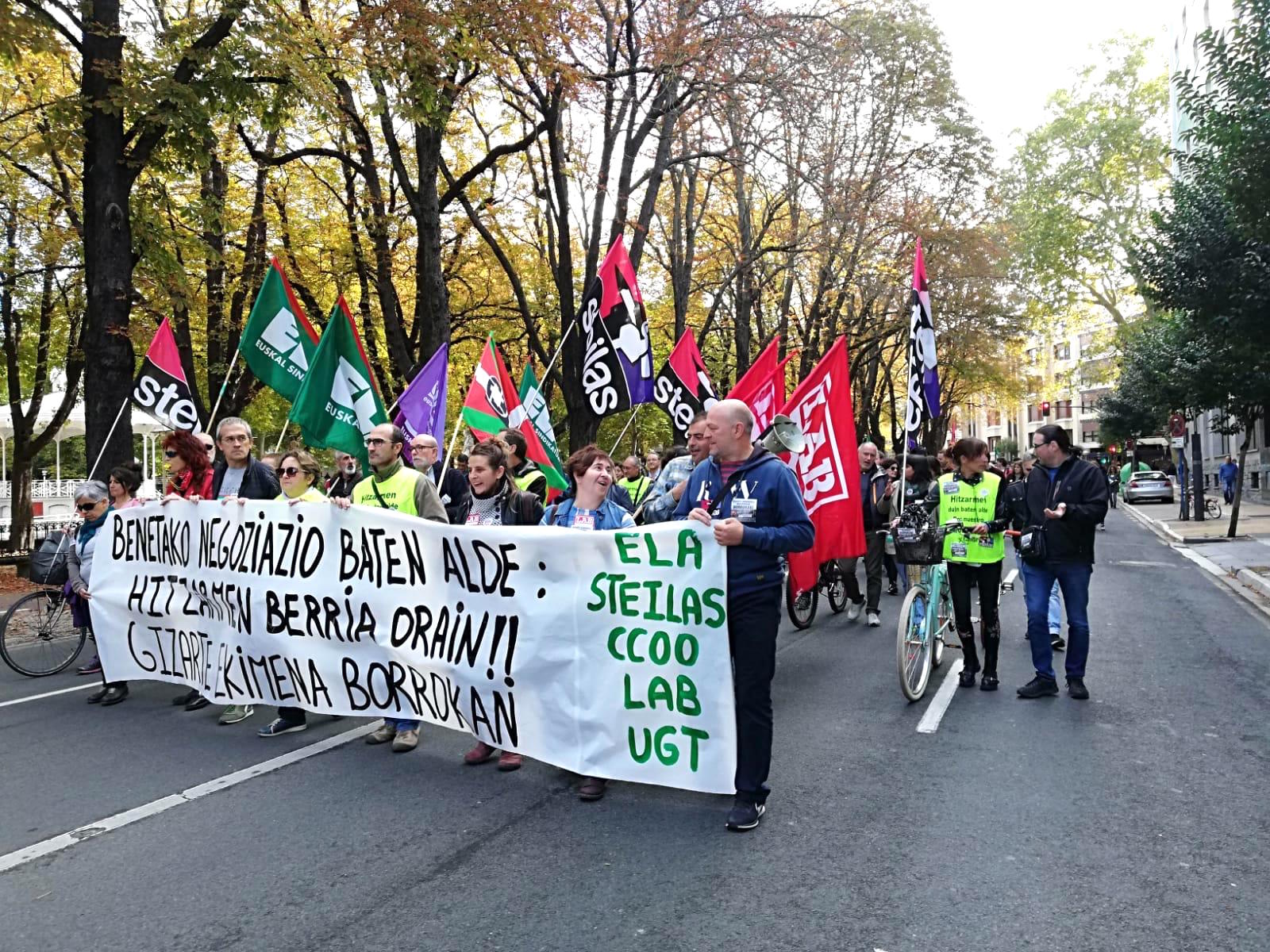 Igual que ayer, el apoyo que hoy ha tenido el quinto día de huelga ha sido muy amplio, con un seguimiento muy similar al de ayer superando el 65%. Casi 6.000 personas tomaron parte en la manifestación celebrada ayer en Bilbo; las celebradas hoy en los tres territorios tambien han sido numerosas, con una participación muy parecida a la de ayer si sumamos las de los tres territorios.