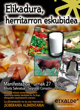 Datorren urriaren 27an elikadura burujabetzaren aldeko Euskal Herriko herri eta jendarte mugimenduen aliantzak elikadura eskubidea aldarrikatzeko manifestazioa deitu du.