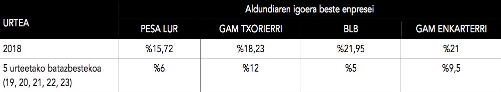 Por todo ello LAB hace un llamamiento a las plantillas de PESA LUR y GAM Txorierri, las dos empresas de Bizkaibus con convocatorias de huelga en estos momentos sobre la mesa, a que no alcancen cualquier acuerdo en sus empresas y que aseguren la no amortización de puestos, para un mejor servicio para la ciudadania, además de unas mejores condiciones laborales tanto económicas como sociales para la plantilla.