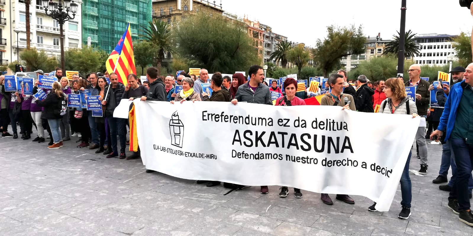 Premiazkoa da mobilizatzea; hortan ari dira dagoeneko Katalunian. Horregatik, elkarretaratze hauek deitu ditugun sindikatuok eutsi egingo diogu demokraziaren, elkarrizketaren eta politikaren aldeko jarrerari, baita printzipio horien aldeko mobilizazioari ere. Horregatik lan munduari dei egiten diogu parte har dezan Gure Esku deitzen ari den mobilizazioetan, batez ere Donostian datorren urriaren 19an izango den manifestazioan (Antigua, 17:30).