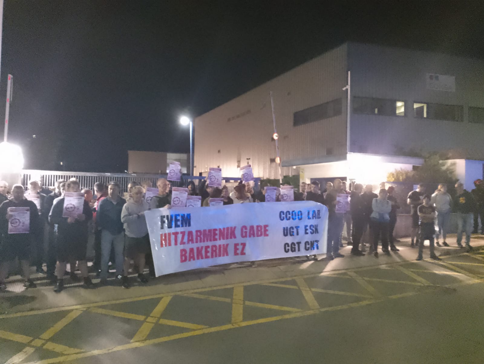 Las y los trabajadores del metal de Bizkaia han protestado ante la empresa Tecuni de Ortuella en defensa de un convenio digno, convocados por los sindicatos LAB, CCOO, UGT, ESK, CGT y CNT. La responsable de esta empresa es Tamara Yague, que también es presidenta de la patronal FVEM. Por ello, nos hemos acercado hasta allí para que escuche de primera mano las reivindicaciones de las y los trabajadores.