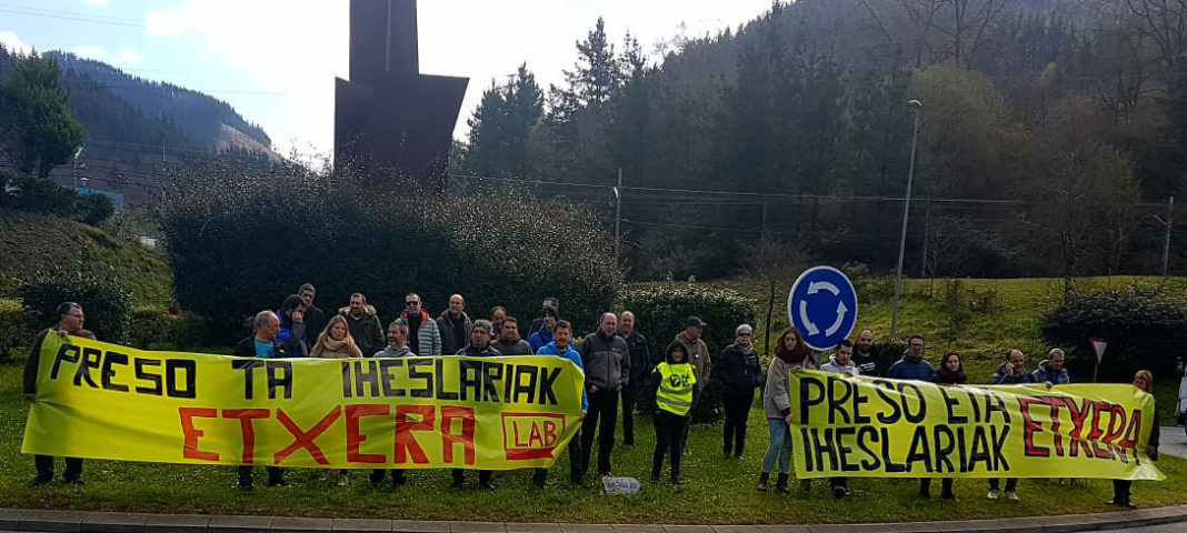LAB Debaldeako kideek, hilabetero eskualdeko herri ezberdinetan egiten duten preso eta iheslarien etxeratzearen aldeko elkarretaratzea egin dute, gaurkoan Elgoibarko autopistako biribilgunean.