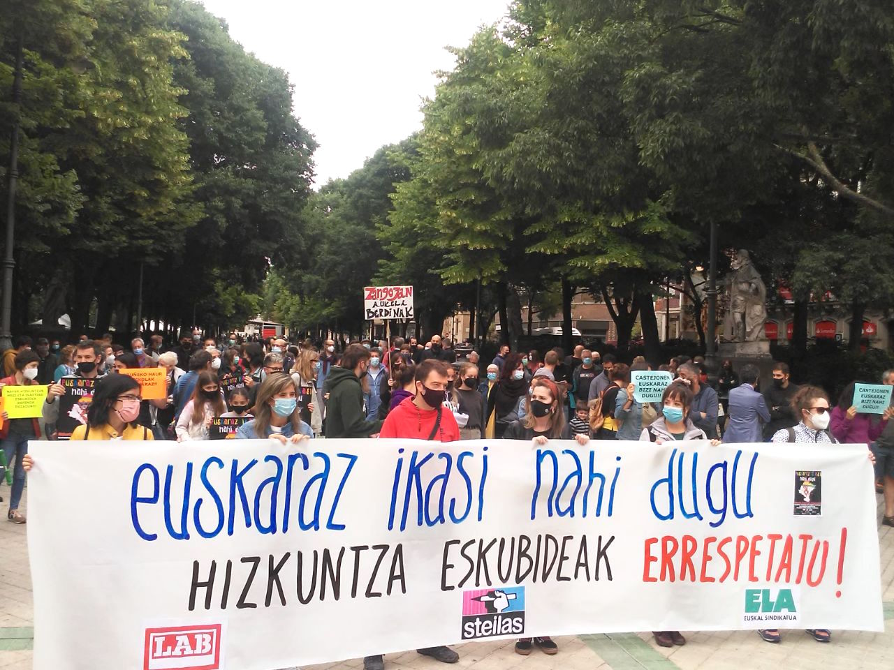 LAB, STEILAS eta ELA sindikatuok deituta, elkarretaratzea egin dugu Iruñean, nafar guztien euskaraz ikasteko eskubidearen defentsan. 0-3, LH, NUP, Pirinioak, Zangozaldea, Tafallaldea, Castejon, Beriain, Arteko ikasketak, landa eremuko DBHn… herritarrek euskaraz ikasteko eskubidea bermatuta behar dute izan.