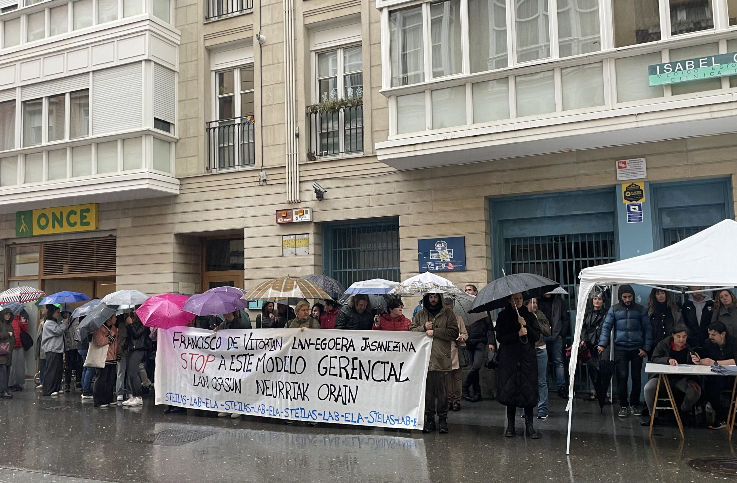 La plantilla de centro y los sindicatos nos hemos concentrado frente a la Delegación de Educación en Gasteiz. El Departamento de Educación y la dirección del centro han rechazado realizar la evaluación de riesgos psicosociales.