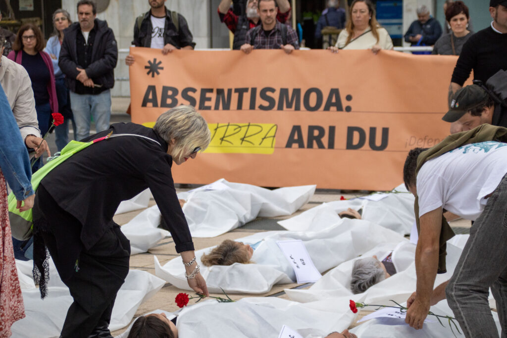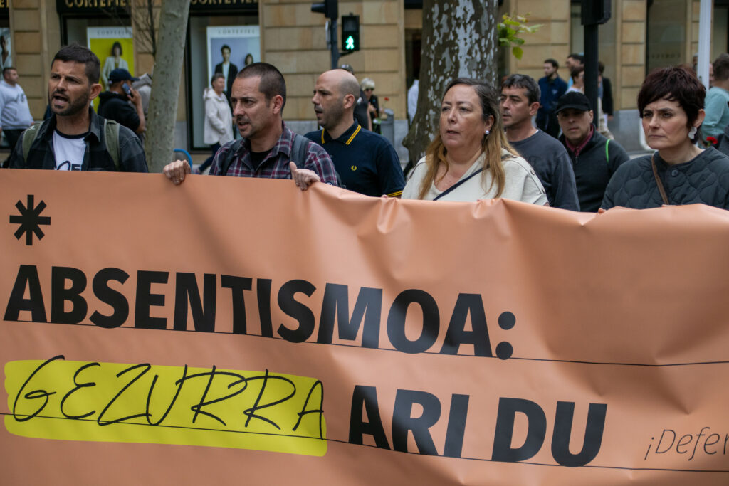 Además, han recordado a las y los 84 trabajadores que murieron el año pasado en Euskal Herria mientras estaban trabajando, y también la realidad más profunda e invisibilizada de quienes mueren por enfermedades profesionales y de quienes sufren daños físicos y mentales. “Hay trabajos que matan y muchos otros —la mayoría— que no dejan vivir”, han denunciado. Han añadido que estos trabajos están claramente condicionados por el género, la clase y la raza. Así, son las mujeres, especialmente las migradas y racializadas, quienes ocupan de forma desproporcionada los sectores más precarizados, invisibilizados y desprotegidos.