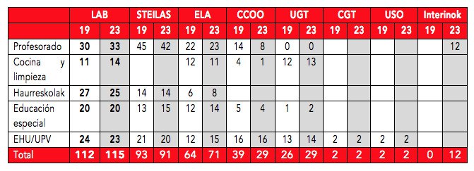 LAB quiere agradecer y felicitar a todos y todas los que se acercaron a votar. En cocina y limpieza hemos conseguido el mayor número de delegadas y delegados, consiguiendo ser la primera fuerza. En Araba mantenemos los 2 representantes, en Gipuzkoa tenemos uno más y en Bizkaia hemos conseguido 2 más.