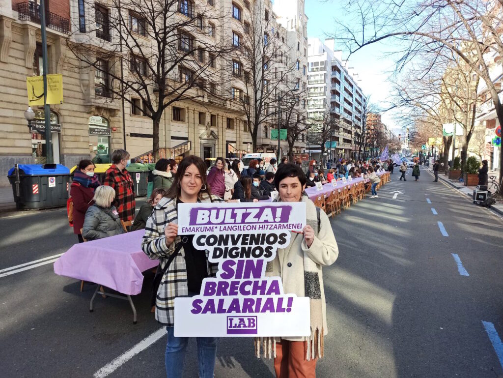 En palabras de la secretaria general, «en la negociación colectiva también existe una brecha entre los convenios masculinizados y feminizados. Para la patronal y las instituciones, estas mujeres son trabajadoras de segunda. Estos convenios son secundarios para ellos y el sindicato LAB no está dispuesto a dar por buena esta situación».