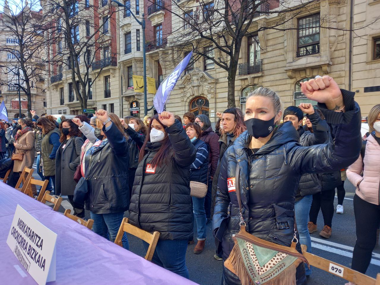 Garbiñe Aranburu ha participado en la movilización de Bilbo, que ha unido la sede del Gobierno Vasco con la de CONFEBASK. La patronal tiene bloqueados una veintena de convenios de sectores feminizados. En este sentido, mediante la movilización hemos visualizado algunos de esos sectores afectados: residencias de mayores, servicio de ayuda a domicilio, comedores, limpieza, comercio y empleadas de hogar, entre otros.