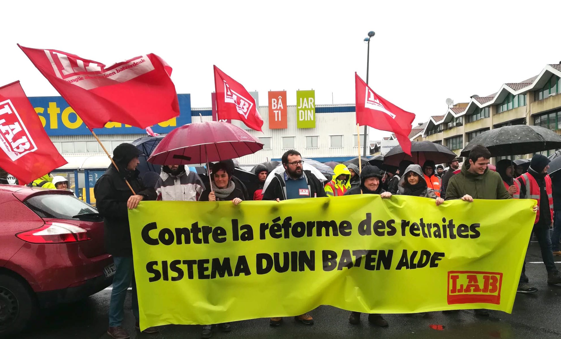 Gaur ere, joan abenduaren 5 eta 10ean bezala, greba eguna da Ipar Euskal Herrian. Hain zuzen ere, Baionako kaleak hartu ditugu Macronen Gobernuak sustatutako erretreten erreforma salatzeko. LABeko idazkari nagusi Garbiñe Aranburu izan da Baionan, eta pentsio sistema propio bat edukitzeko beharra aldarrikatu du, pentsio sistema publikoa erasotzen ari diren honetan.