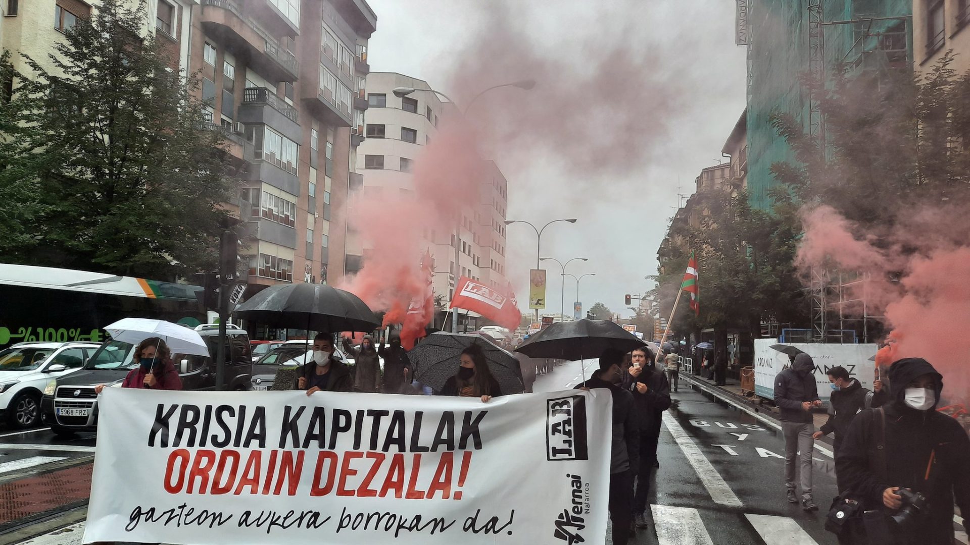 Manifestazioa egin dugu Ernai gazte antolakundearekin batera, Iruñean, gazte langileek bizi duten prekarietatea salatzeko eta krisia kapitalak ordain dezala eskatzeko. Manifestazioa autobus geltoki zaharretik atera da, eta Sarasate pasealekuan bukatu, Parlamentuaren aurrean. Bertan, LABeko ordezkari Imanol Karrerak hartu du hitza, eta antolatzeko eta borrokatzeko deia berretsi du: «Antolatu egin behar gara. Aurrean dugun aukera aprobetxatu behar dugu, aldaketa historiko baten aurrean baikaude. Aukera dugu beste eredu politiko, ekonomiko eta sozial bat eraikitzeko».