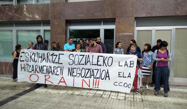Gipuzkoako Esku Hartze Sozialeko herrialdeko hitzarmenaren negoziazio mahaian ordezkaritza dugun sindikatuok (LAB, ELA, CCOO) PRECO aurrean izan gara gaur hitzarmenaren negoziazioa martxan jarri dadin exijitzeko.