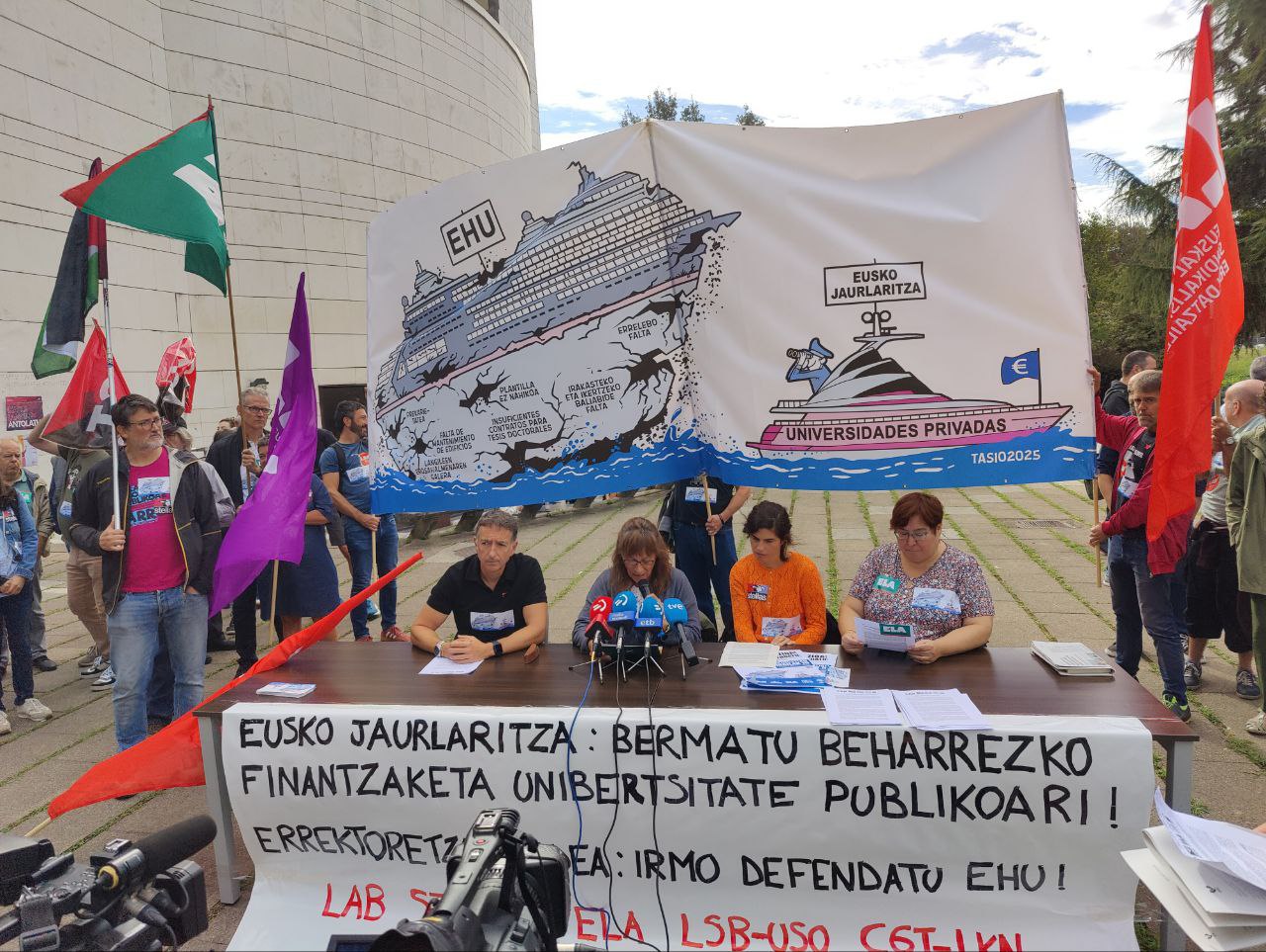 Al mismo tiempo, el Gobierno Vasco pone la alfombra roja a las universidades privadas, promoviendo un modelo elitista de educación universitaria. La EHU, que debería ser una robusta embarcación para todas y todos, se está hundiendo poco a poco, mientras la flota de universidades privadas es cada vez más diversa y potente, con todo tipo de facilidades desde las instituciones y financiada directa o indirectamente con dinero público.